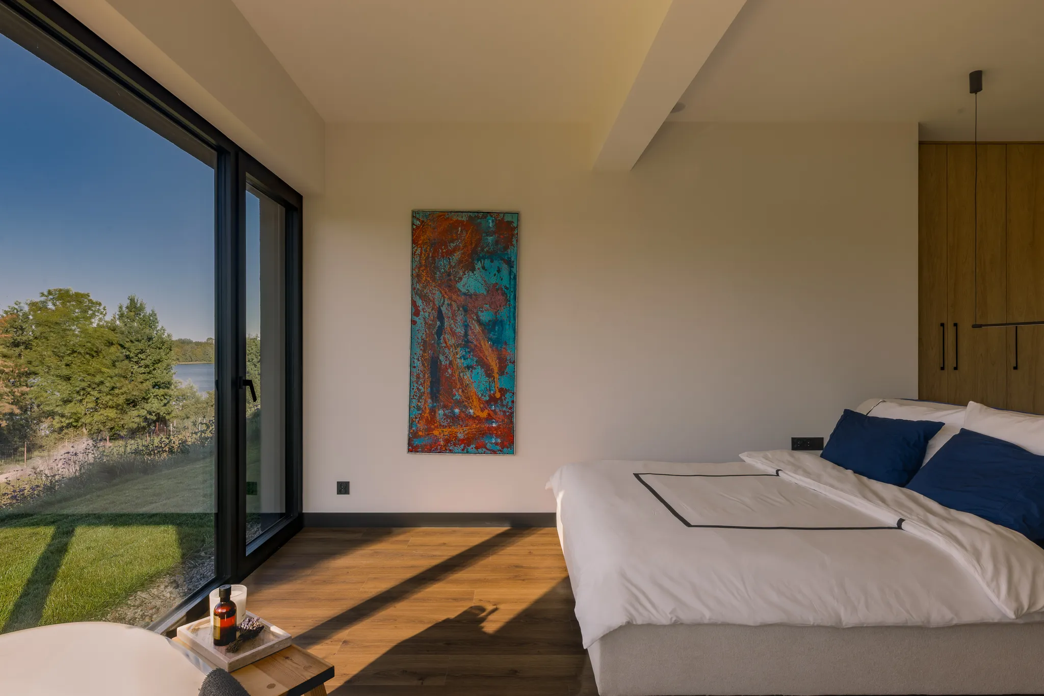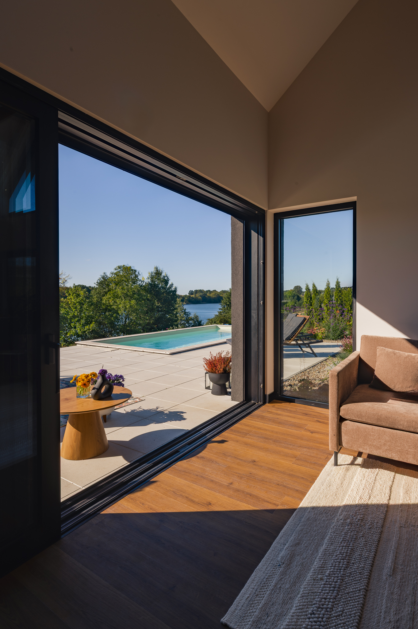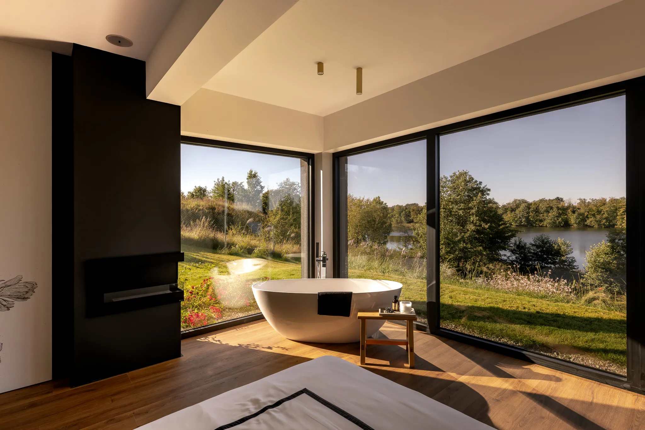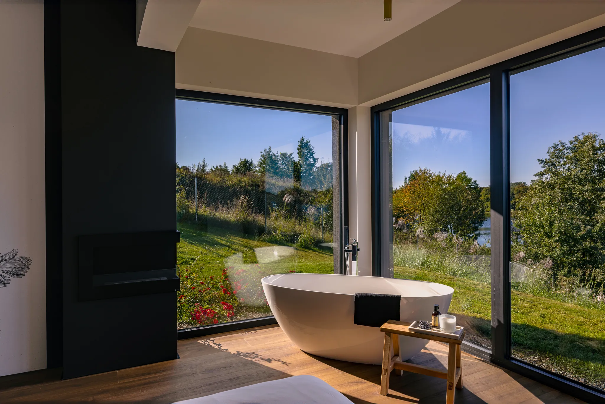 Znajdziesz tu wszystko, czego potrzebujesz, by naładować baterie: przestrzeń, wygodę, piękne wnętrza, relaksującą wannę, nastrojowy kominek, pywatny basen, a także bezpośredni kontakt z naturą – pola, lasy i śpiew ptaków tuż za oknem.